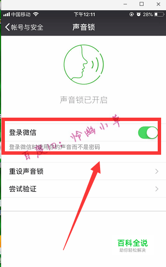 显示声音锁已开启,下次我们就能用自己的声音登录微信了,比用手输入密码方便很多。