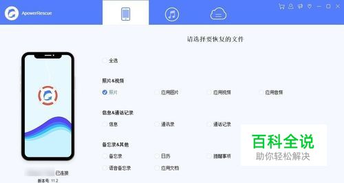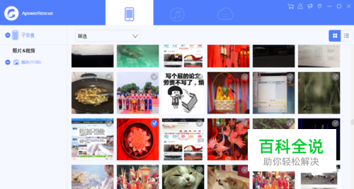 在电脑中下载并安装 ApowerRescue数据恢复软件。然后用USB线去连接一下ApowerRescue,然后将 照片选项勾选,点击软件右下角的 开始扫描。