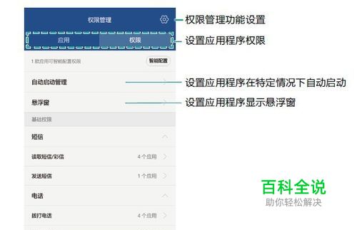 打开【手机管家】,点击【权限管理】,可设置应用程序的各项权限。