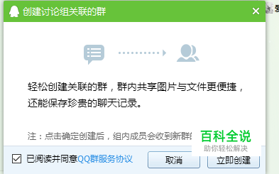 我们会收到提示的,然后我们就可以进行创建了,创建以后,讨论组里面人员也会知道的。