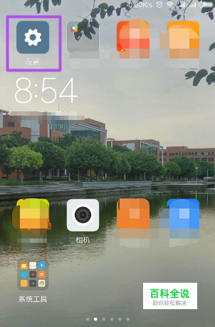 解锁之后,点击手机桌面的“设置“图标来打开设置。
