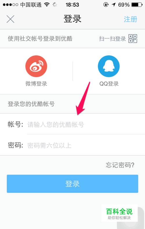 然后登录自己的优酷账户。