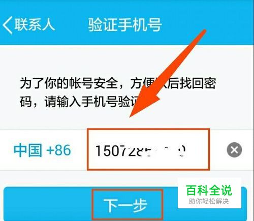 再验证手机号,输入手机号,点击“下一步”