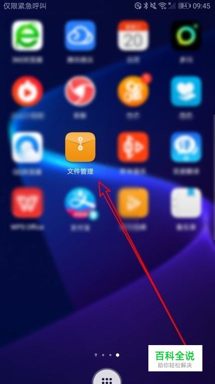 我们在手机屏幕上找到华为手机的“文件管理”的图标。