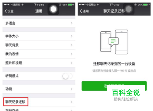 方法一:微信聊天记录迁移 将两部设备连接到同一Wi-Fi下,在原来的手机上打开微信,选择「设置」-「通用」-「聊天记录迁移」-「选择聊天记录」-「下一步」,会生成一个二维码。