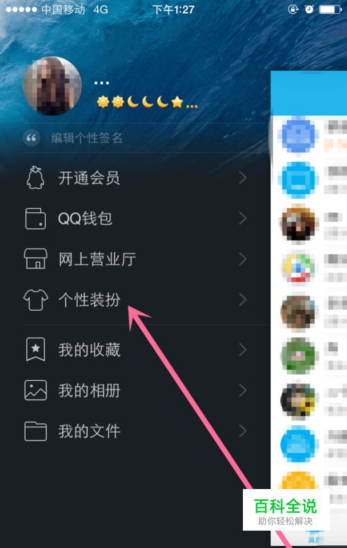 如图打开QQ左侧,找到个性装扮