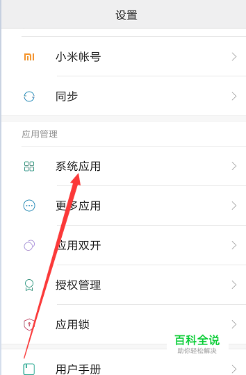在设置界面我们往下拉,找到【系统应用】后点击进入即可。