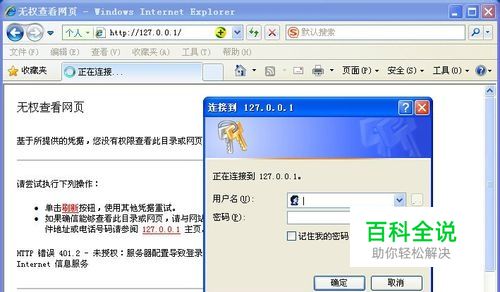 3、然后依次点击当前对话框“确定”按钮,关闭对话框。关闭所有打开的IE浏览器页面,然后在打开的IE浏览器地址栏输入 http://localhost/或http://127.0.0.1/ ,就不用账号密码了,如下图