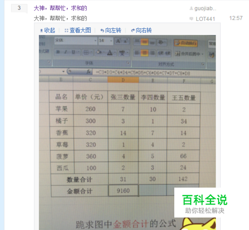最后一步就是单击成绩总和单元格,检查是不是相对应的单击和相对应的数量相乘! 如图所示:
