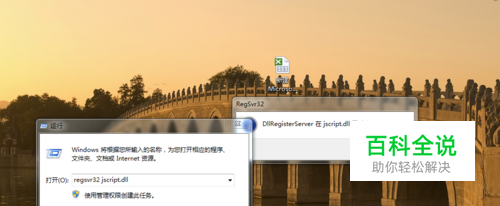 接着输入 regsvr32 jscript.dll,点“确定”。