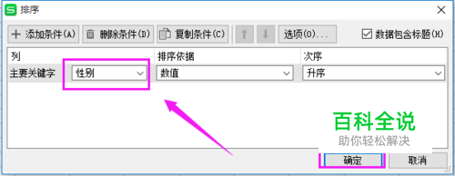 小编就选择“性别”了,点击“确定”,如图。