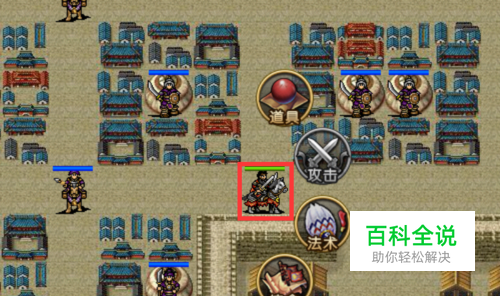 第五步,再次向下移动三格待命,不要冲出两边房屋的街道外面很危险,这时内城墙左下角处停留着一个轻骑兵,需要等待他离开。