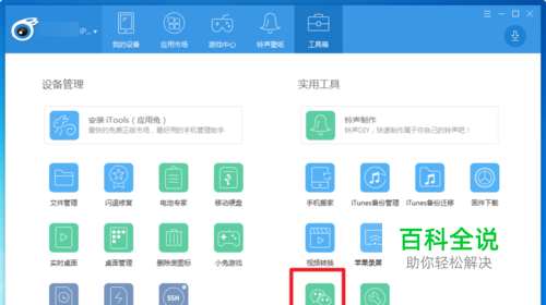 下载并安装打开itools主界面,连接好iPhone手机 点击 “微信管理”