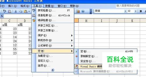 首先,打开Visual Basic 编辑器。以此点击【工具】-【宏】-【Visual Basic 编辑器】