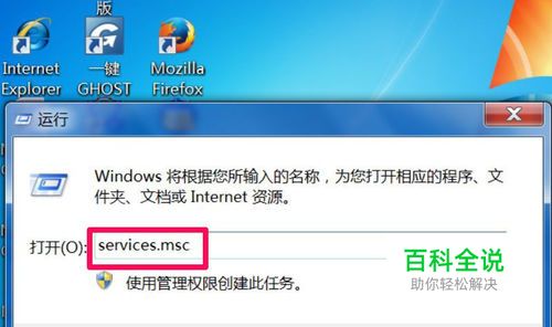 要解决这个问题,先打开“运行‘程序,输入services.,msc命令,打开系统服务。