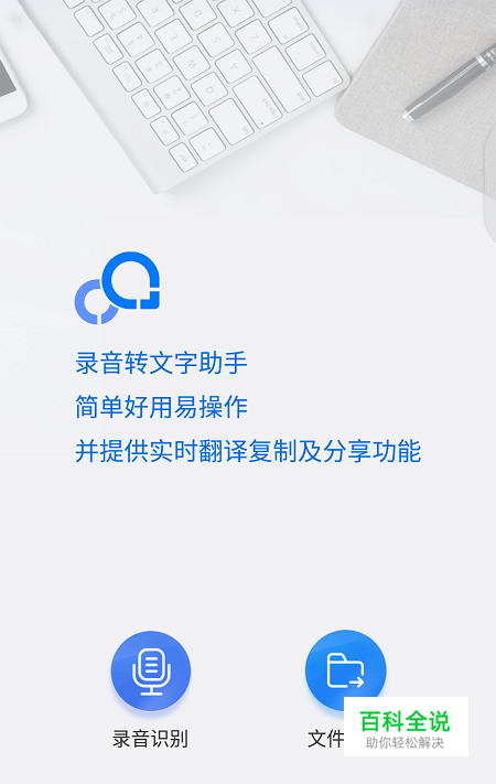 ① 打开安装好的录音转文字助手,进入软件页面可以看到两个选项——录音识别、 文件识别(这里以录音识别举例);