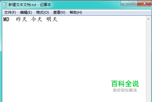 在记事本输入要创建的文件夹名字,在第一个名字前面加上“MD”(注意其后要加一个半角空格),保证每一个文件夹名之间以半角空格分开。