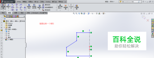先绘制一个草图截面,绘制一条中心线,通过中心线可以直接镜像实体到另一面。完成后通过拉伸凸台创建一个实体。