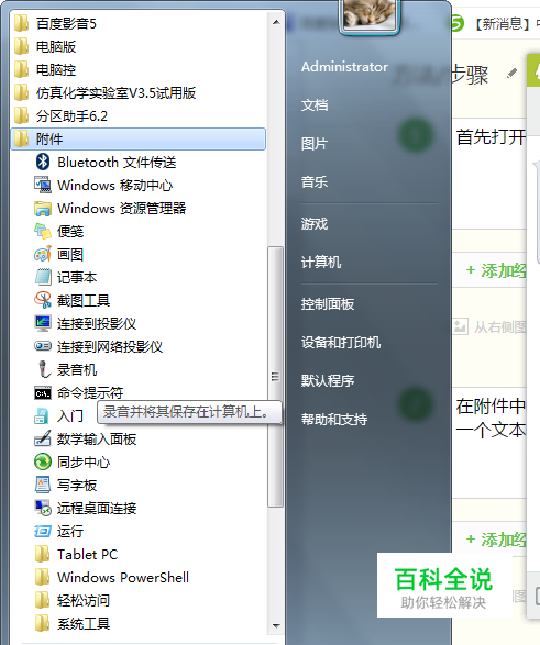 首先打开开始-运行,然后我们在列表中找到附件,