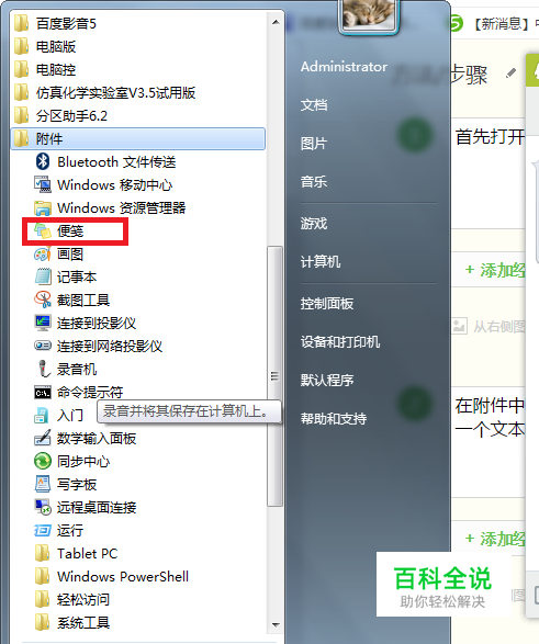 在附件中选择便签,一般在不起眼的地方,找到后打开,即可在电脑桌面上看到一个文本框