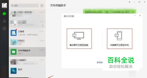 备份聊天记录至电脑/恢复聊天记录到手机 登录电脑版微信后,可以在左下角选择备份与恢复,来实现手机与电脑间现有聊天记录的备份转移。温馨提示:这里如果要将手机上的聊天记录备份至电脑,需要手机与电脑在同一无线网络下并在手机上确认。