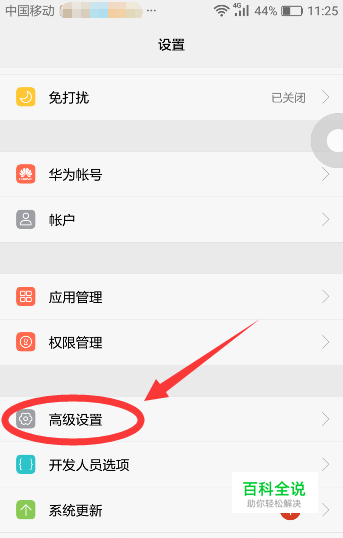 对手机进行设置,点击“设置”,在设置页面下找到“高级设置”。