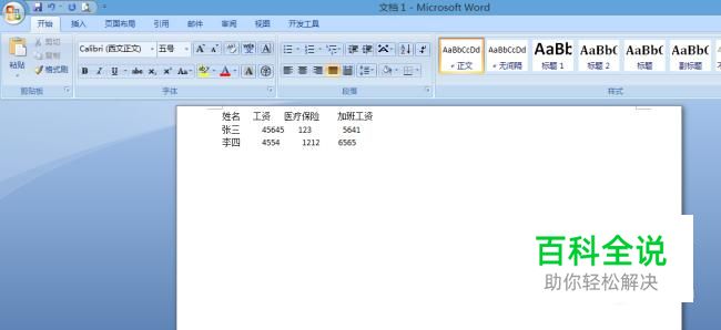 打开一张工资表的Word文档,这时候会看到竖向不对齐的现象
