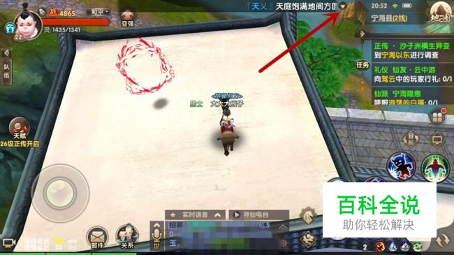 进入游戏主界面,选择上方小三角打开面板。