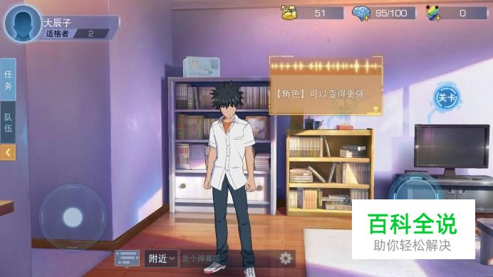 与电视机进行对话进入章节界面,点选关卡后进入关卡信息,查看后点击“战斗”