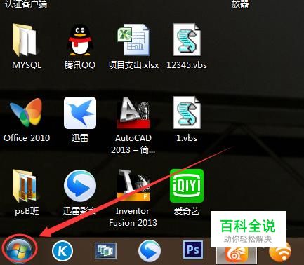 首先我们回到电脑桌面,点击桌面左下角的图标。如图所示: