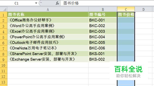 点击确定之后,把鼠标放在图书价格数列的空格中,会有下拉框图标,点击下拉图标根据数据来源选择相应的数字。