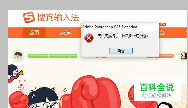 当你点击左侧工具栏中的移动工具,移动图层的时候,就会弹出一个对话框提示无法完成请求,因为图层以锁定。