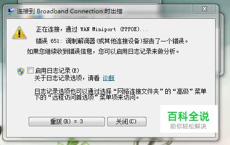 电脑和MODEN全部断电5分钟,在重启,重新点击宽带连接输入正确的账号和密码再进行登录。
