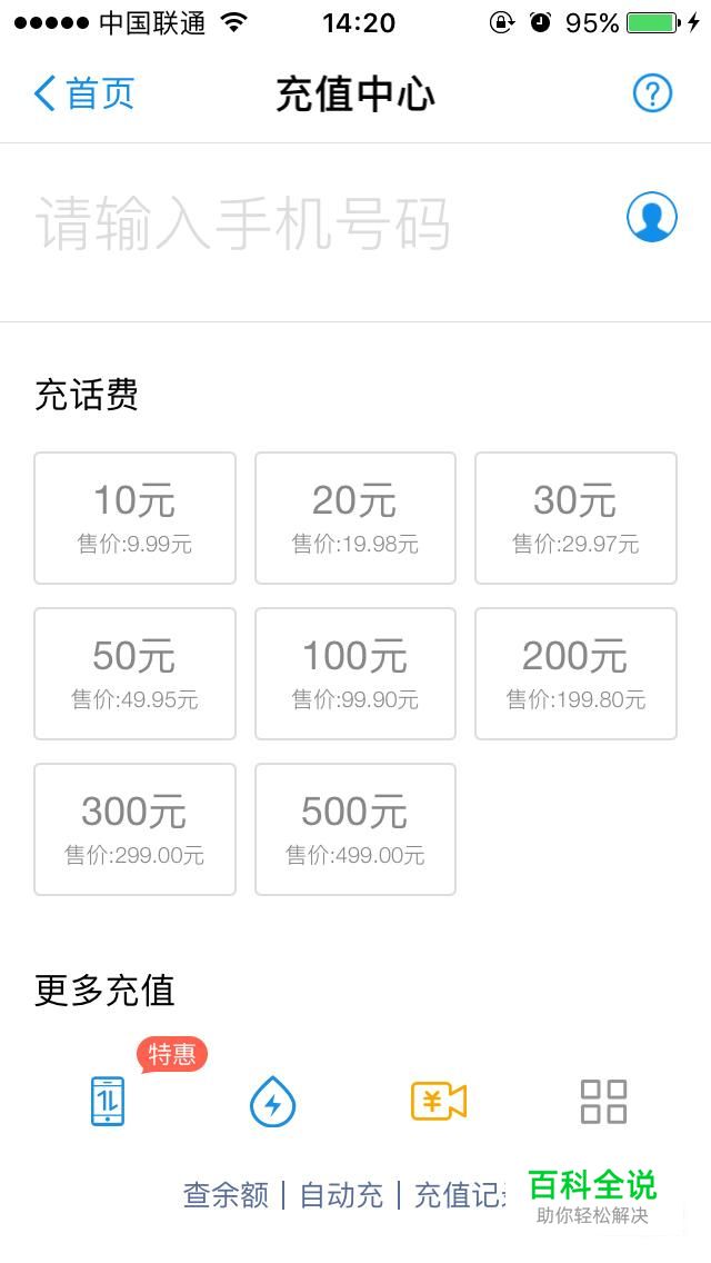 点击“充值中心”输入电话号码进行充值即可。