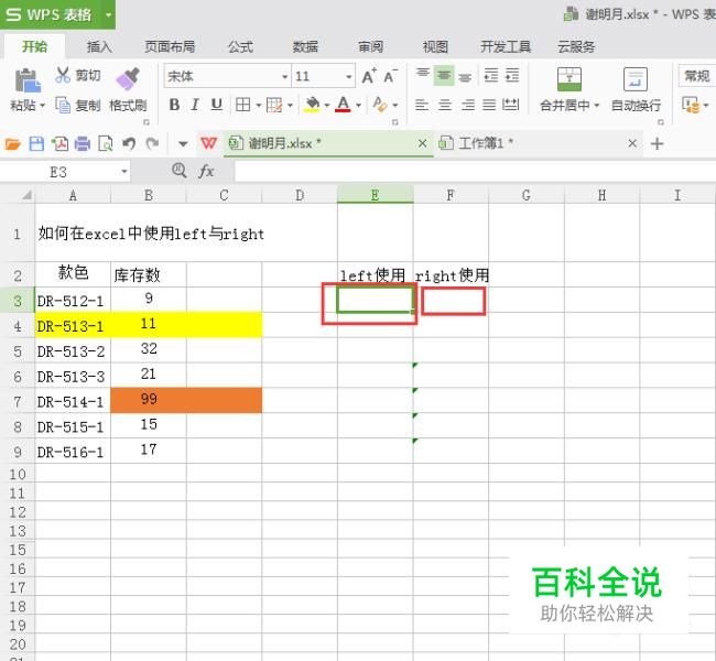 表格是我选取我们公司的款号与颜色组成的款色对应该的库存数,数据是比较少的,主要是为了方便大家理解公式。首先我们需要选中一个呈现我们结果的单元格(如图),我这里是随便选的一个,大家可以根据自己的需求任意的选。