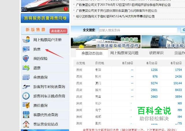 在浏览器以模糊搜索12306,然后点击进入12306官网,进入官网后,点击左边的购票选项。