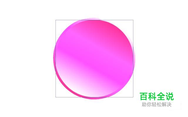 选择工具箱中的【渐变变形工具】,选中圆形后出现编辑手柄边框。将光标指向旋转手柄,向下拖动鼠标,改变渐变颜色的方向,如图所示。