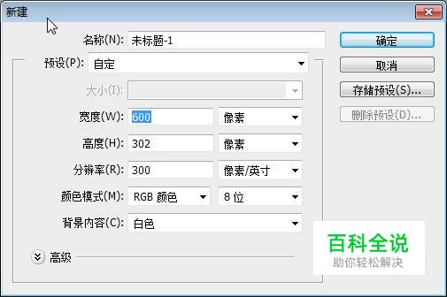 建立一个新的文档,尺寸为:600×302/像素。