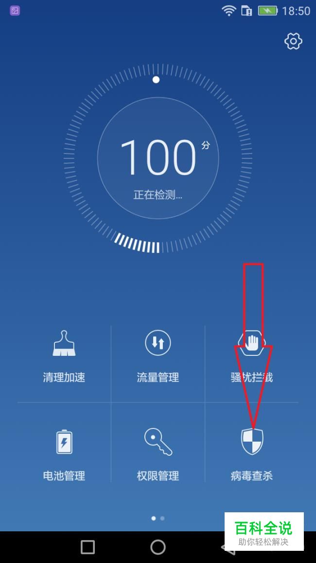 在手机管家中点击病毒查杀。