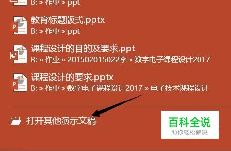 双击打开ppt软件,在打开页面,单击打开其他演示文稿。