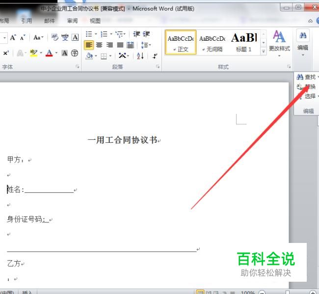 打开word文档,在界面点击右侧的编辑。在出现的栏目点击打开替换工具