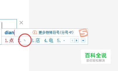 下面就会出现符合特征的符号,其中,就有我们要打的“丶”。