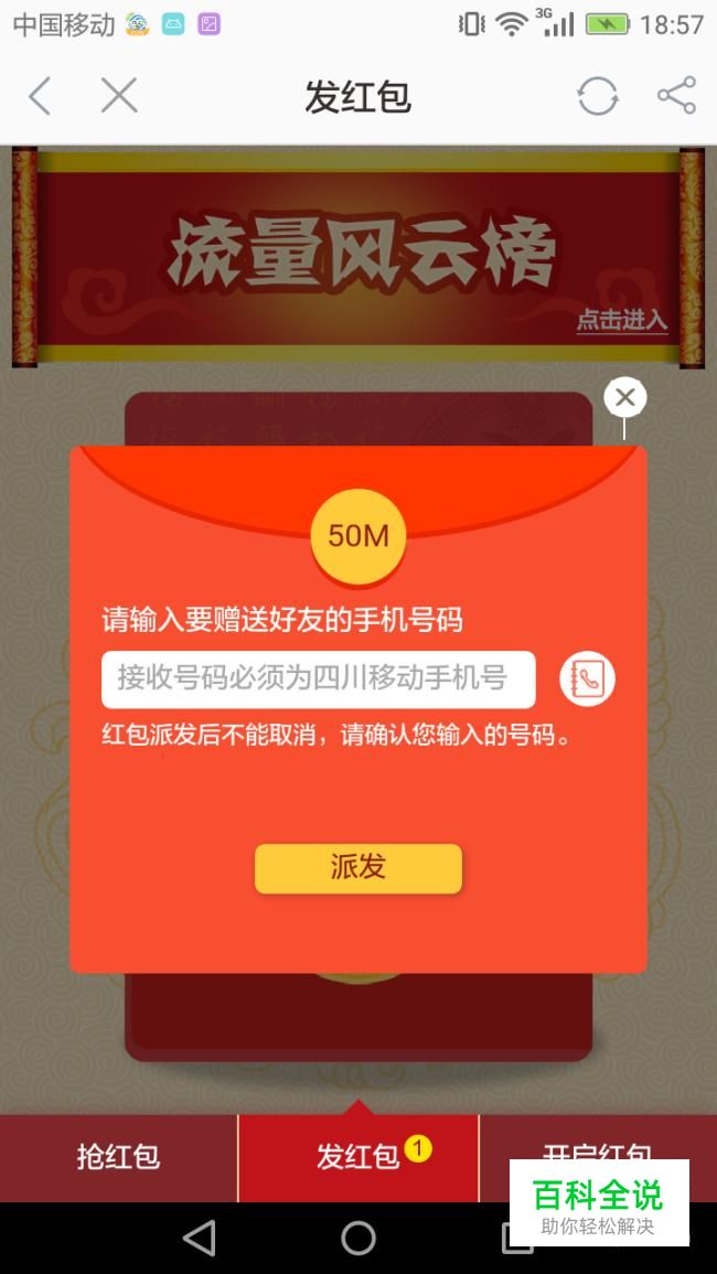 中国移动怎么送给好友流量红包?
