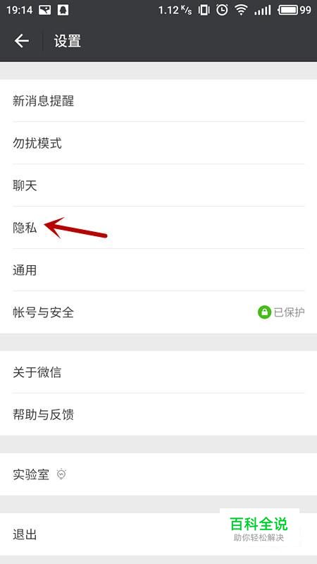 在设置中,选择“隐私”。
