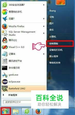 首先,打开计算机左下角的开始菜单,点击控制面板。