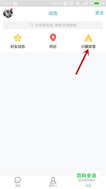 进入动态界面,选择“兴趣部落”