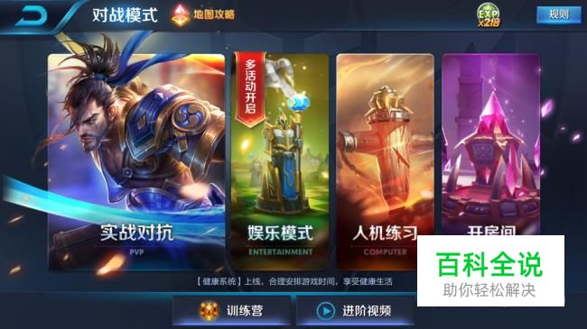进入游戏后,选择任意的游戏模式进入,可以是匹配、排位、或者人机,也可以进入训练模式。