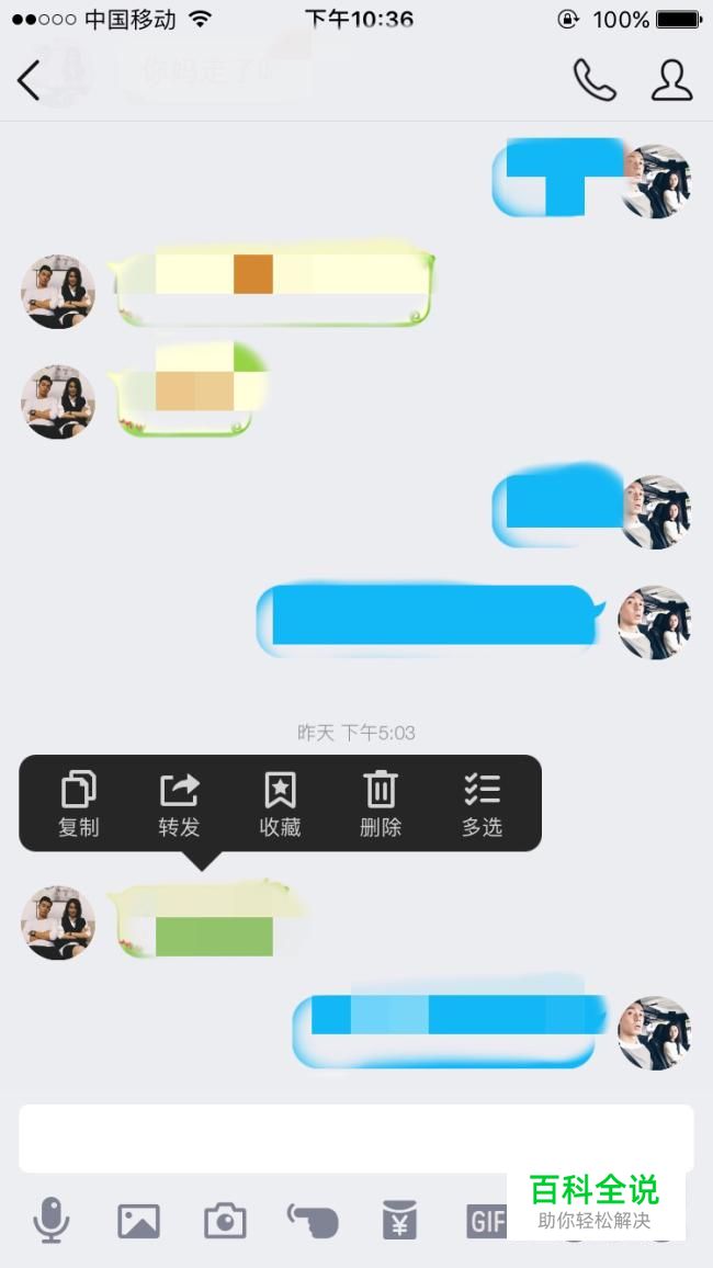 点了多选之后,就会在聊天记录前面出现一个可以勾选的圈圈,然后选中你要转发的消息。