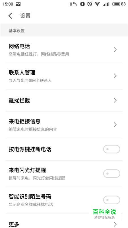 进入通话设置界面,选择“更多”