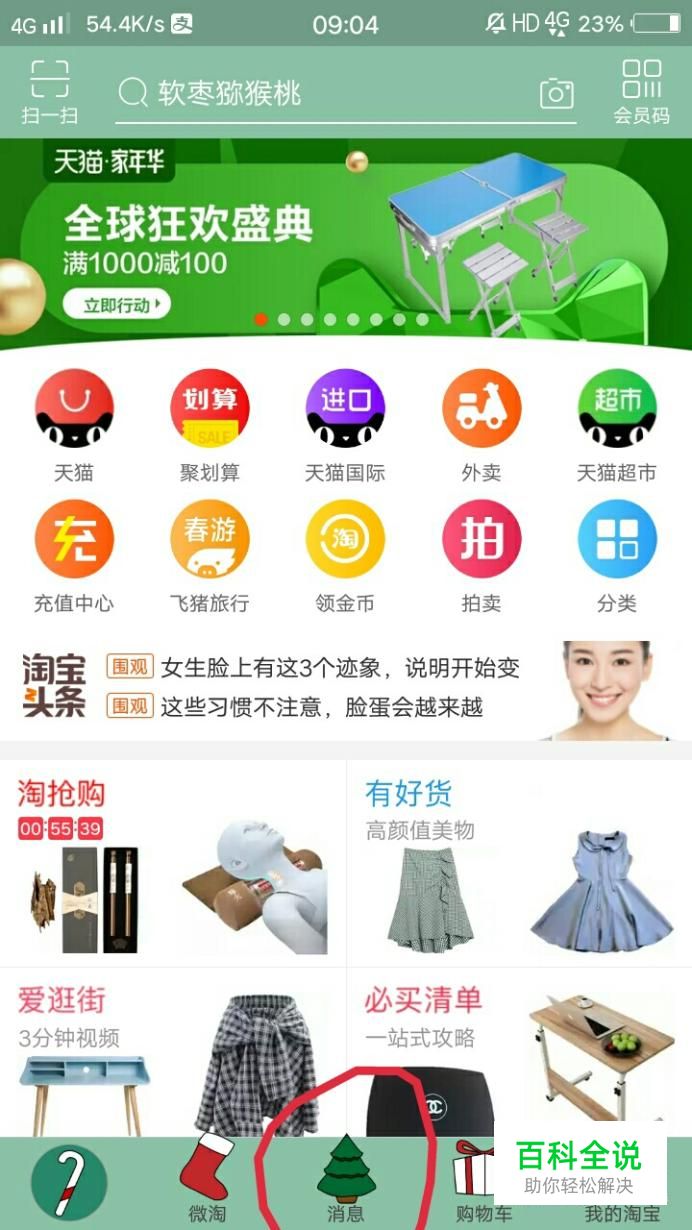 打开淘宝后,首先点击消息。